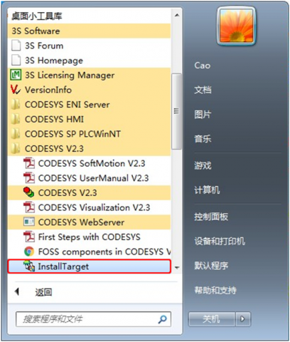 鐐瑰嚮鎵撳紑锛氬紑濮嬭彍鍗 -> 鎵鏈夌▼搴 -> 3S Software -> CODESYS V2.3 -> InstallTarget