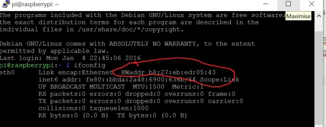 鐜板湪锛屾垜浠渶瑕佹壘鍑篜i鐨勪互澶綉绔彛鐨勭‖浠讹紙MAC锛夊湴鍧锛屼互鍛婅瘔CODESYS鍦ㄥ摢閲屽鎵綢O锛屼负姝わ紝鍙互灏唒i鎻掑叆鐩戣鍣ㄦ垨SSH锛屽苟鍦ㄧ粓绔腑浣跨敤鍛戒护鈥 ifconfig鈥 銆傛偍姝e湪浠庣鍙th0瀵绘壘HWaddr鏃佽竟鐨勪唬鐮侊紙鍙傝鍥剧墖锛夈