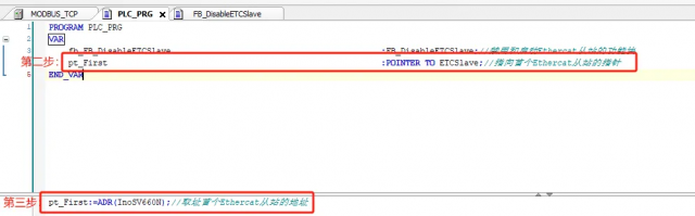 鐒跺悗鍦ㄧ▼搴忎腑瀹氫箟涓涓寚閽堬紝鎸囧悜棣栦釜Ethercat浠庣珯锛