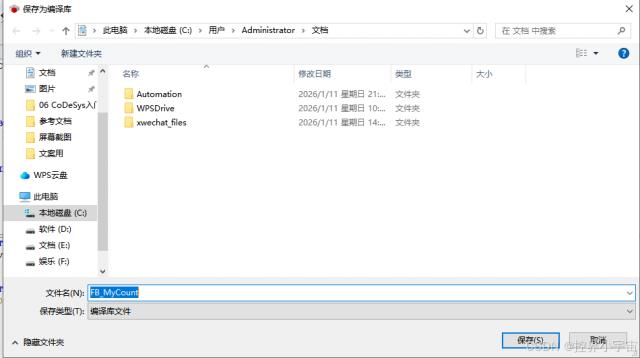 通过菜单路径“文件”→“新建工程”→“函数库”→“CoDeSys Library”,输入库名称(如“FB_MyCount”),点击“确定”即可生成新库文件框架。若需创建“容器库”(仅引用其他库,自身无内容,方便批量调用),可选择“CODESYS Container library”类型。