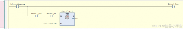 0绉掞細Motor1_Run=TRUE 鈫 StartTimer1.IN=TRUE锛屽紑濮嬭鏃讹紝StartTimer1.Q=FALSE锛堣鏃朵腑锛