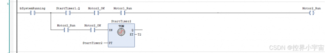 • 鍚姩鏉′欢锛圓ND鍏崇郴锛夛細StartTimer1.Q=TRUE锛圡1鍚姩寤舵椂瀹屾垚锛夈丮otor2_OK=TRUE锛圡2鏃犳晠闅滐級銆丮otor1_Run=TRUE锛圡1浠嶅湪姝e父杩愯锛夛紱