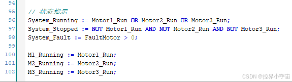 // 上传变量:Motor1_Run、Motor2_Run、Motor3_Run、System_Fault、FaultMotor